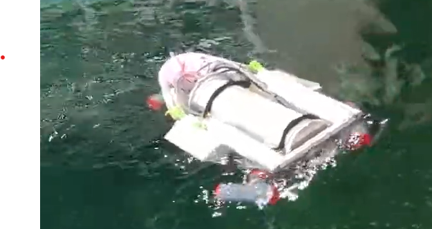 | 空中重量8 kg 水中重量は 20~30gの浮きとしてある、2つのハルを持つ小型AUVである。 基本的には昨年度の優勝機体を流用しているが変更点あり。機体の質量の削減のため、浮力材及び錘の最適化を行い、不必要なスラスタを除去している。また、この際重心を下げ、浮心を上げている。 アクチュエータとしてはサージ用スラスタ*2 およびヒーブ用スラスタ*2の4つを利用している。 センサとしてはスラスタのエンコーダー、及び深度センサとカメラセンサ、ジャイロセンサと加速度センサ(IMU)を利用する予定。 基本的にカメラを用いて風船を発見し、機体ごと突入することで風船を破壊する予定。 |